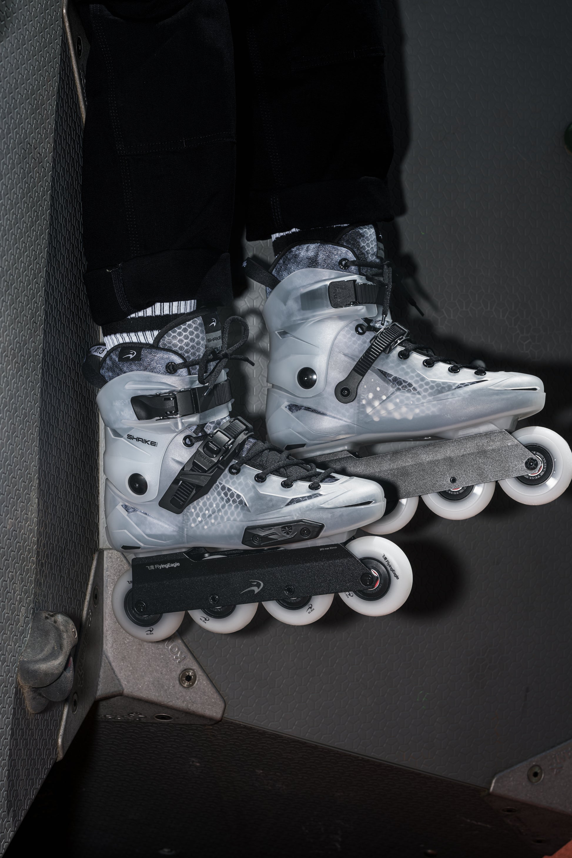 Elevate your everyday skating experience with the new FlyingEagle SHRIKE Pro, a modern-looking inline skate stocked with a rockerable frame and ready for any urban skating situation.